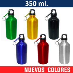 Botella deportiva de aluminio con tapa rosca y gancho mosquetón.