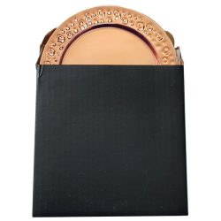 Set de 2 posavasos de acero inoxidable electro-plateado en cobre con borde liso. Presentación en caja de regalo negra.