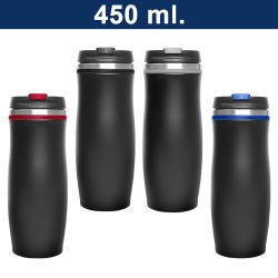 Atractivo mug metálico con tapón de rosca anti derrame de plástico sólido. Acabado matte.