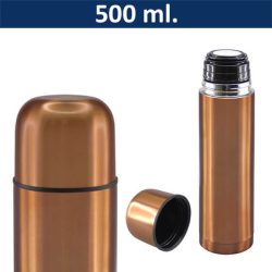 Termo color cobre, con tapa rosca y dosificador.