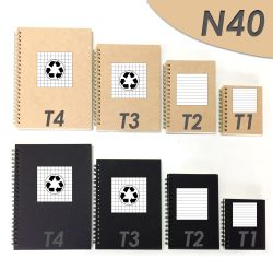 Cuaderno ecológico en color Negro y Kraft. Anillado metálico doble cero.