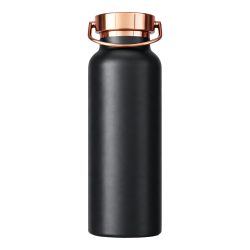 Termo de acero inoxidable color cobre electro-plateado, tapa rosca. Presentación en bolsa plástica dentro de caja de cartón negra.