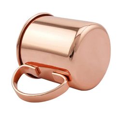Mug de acero inoxidable electro plateado en cobre y asa de Zamak. Cobre en interior, color acero inoxidable en interior. Presentación en plástico burbuja dentro de caja kraft.