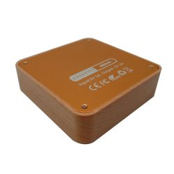 Batería externa cuadrada de madera de bambú. Capacidad de 4.000 mAh. Presentado en estuche de cartón reciclado duro.