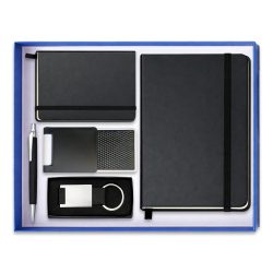Set para regalo que incluye 1 bolígrafo L65, 1 libreta N33 y 1 libreta N34, un llavero K29, todo dentro de 1 estuche VL1810.