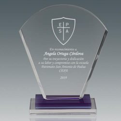 Galvano de cristal con un alto índice de refracción. Perfecto para grabado láser. Presentación  en estuche azul con interior de paño de seda y protección de aislapol.