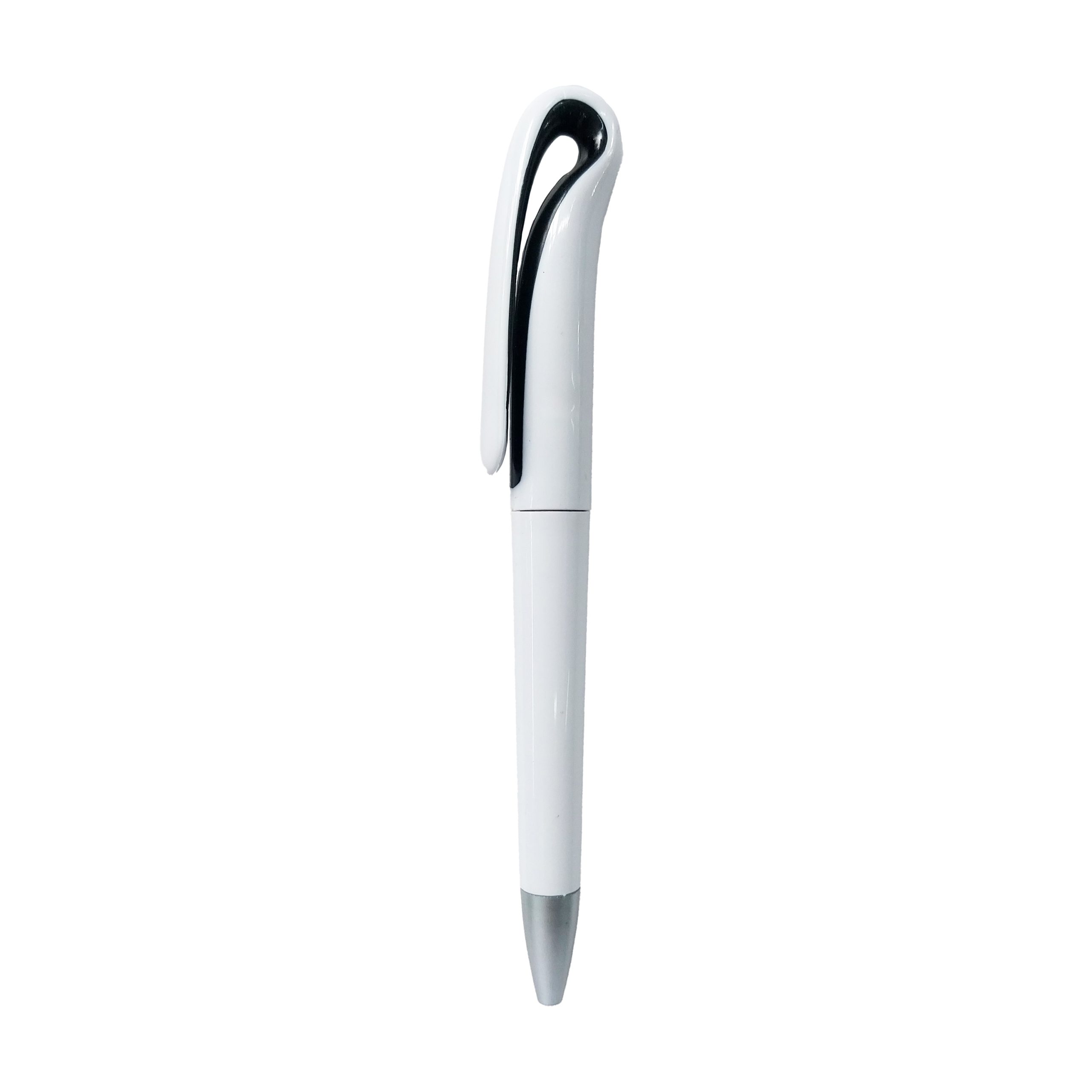 Bolígrafo plástico con cuerpo blanco detalles de colores. Presentación en bolsa plástica.