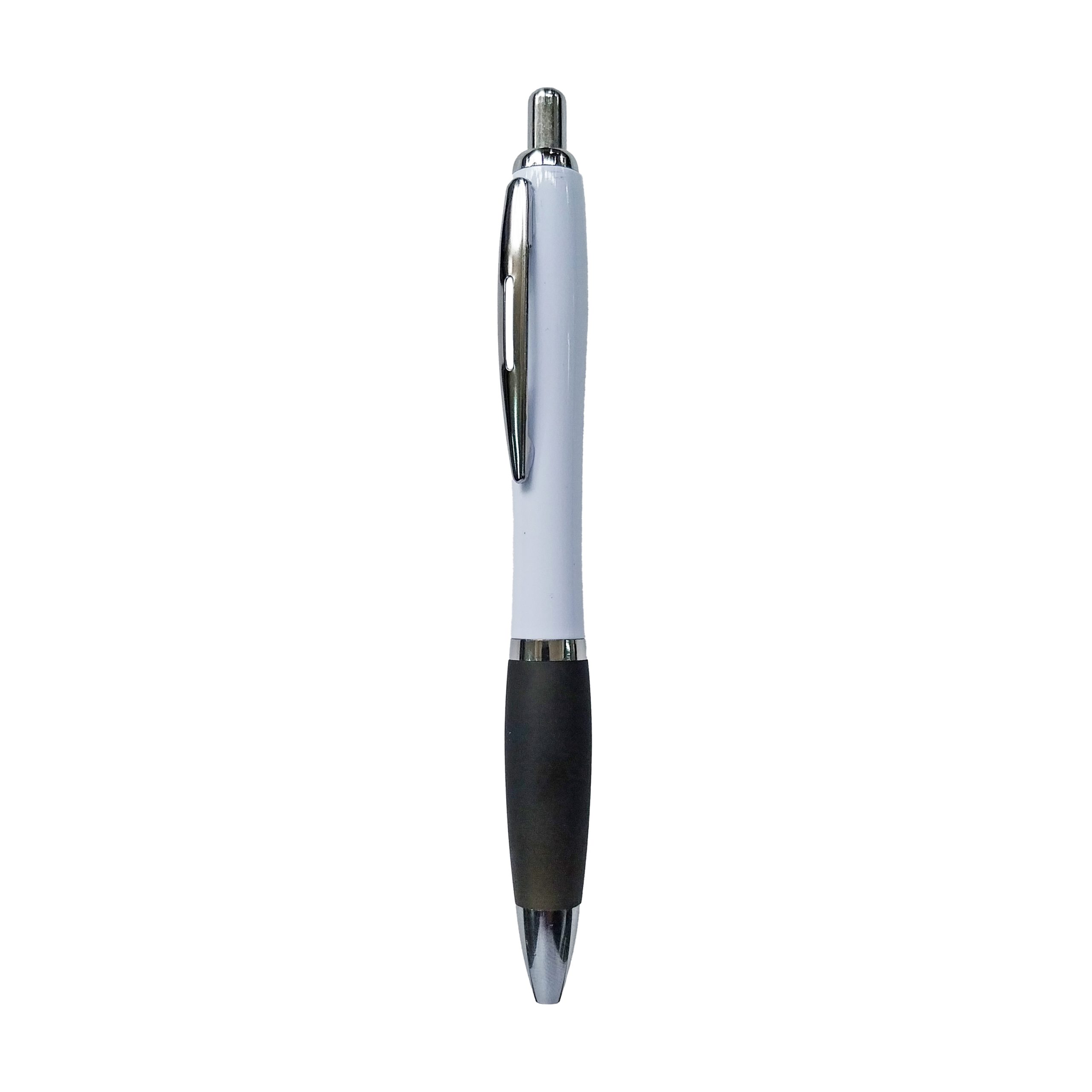 Bolígrafo plástico color blanco con soporte plástico en distintos colores.