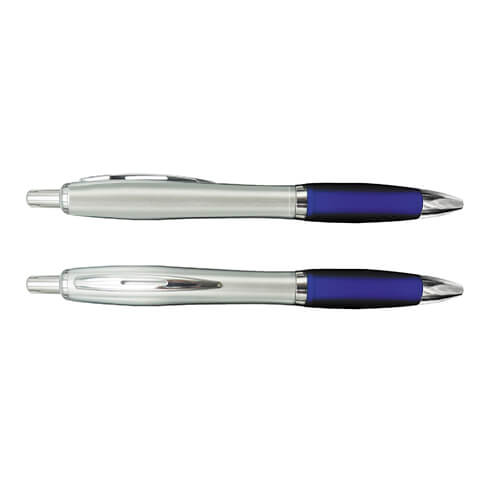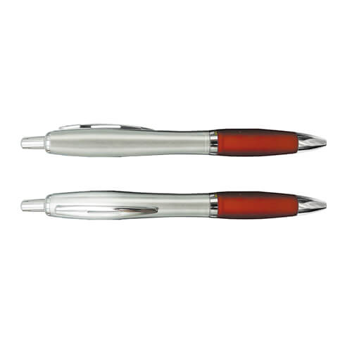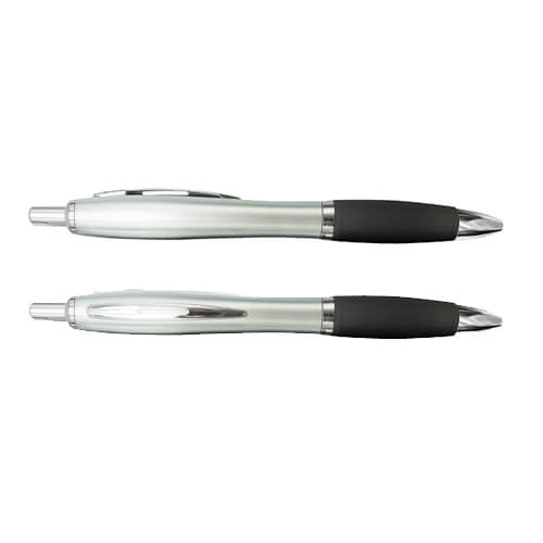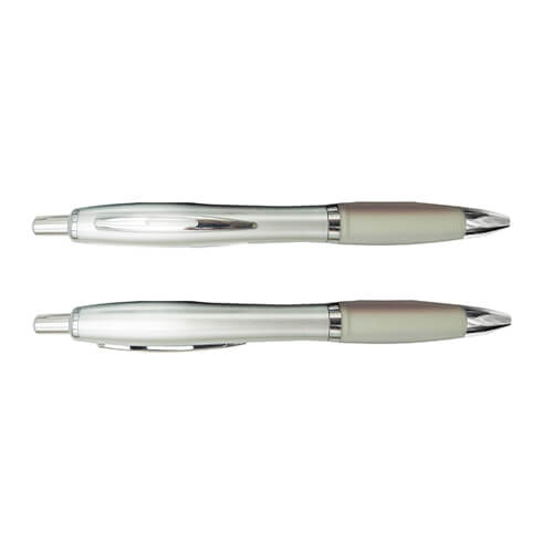 Bolígrafo plástico color plata con soporte engomado en distintos colores.