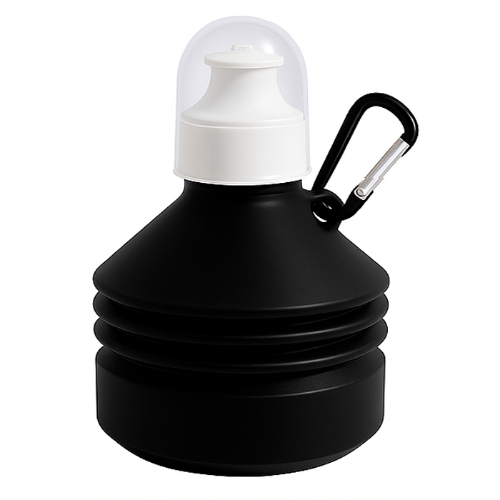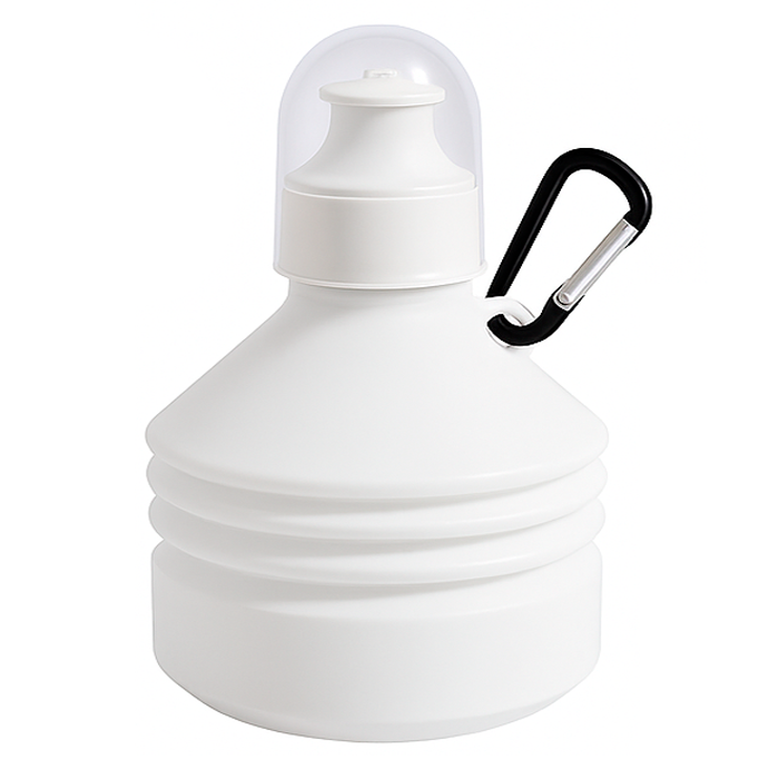 Bidón plegable de 570 ml de capacidad con cuerpo ergonómico acabado en PE de Color Blanco. Dosificador de seguridad con capucha de cierre y mosquetón metálico de transporte. Otros colores de importación.