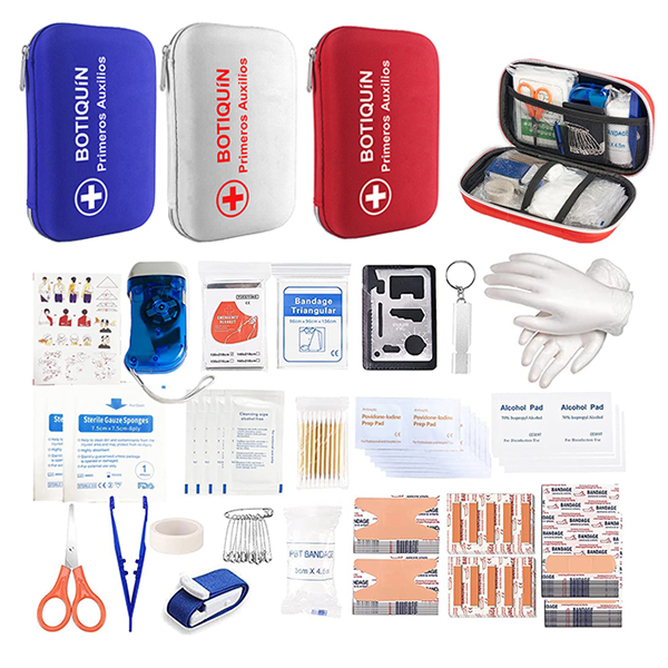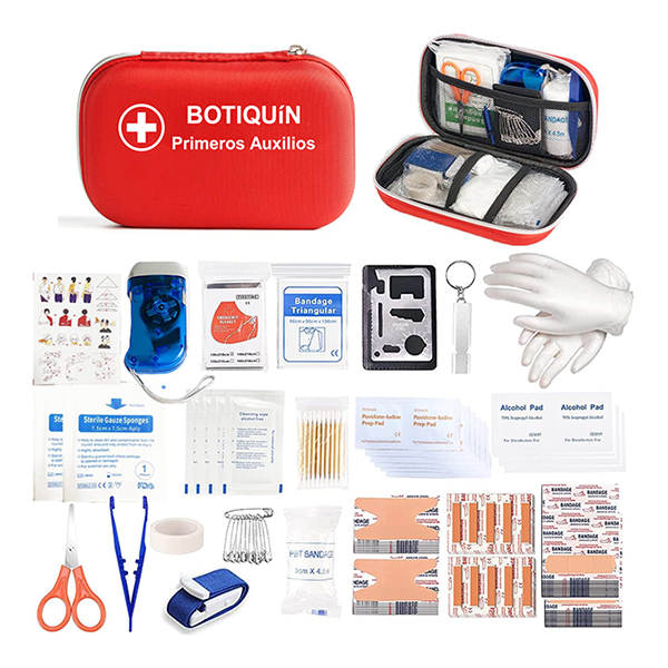 Botiquín para primeros auxilios 50 en 1. Estuche rígido de tela.