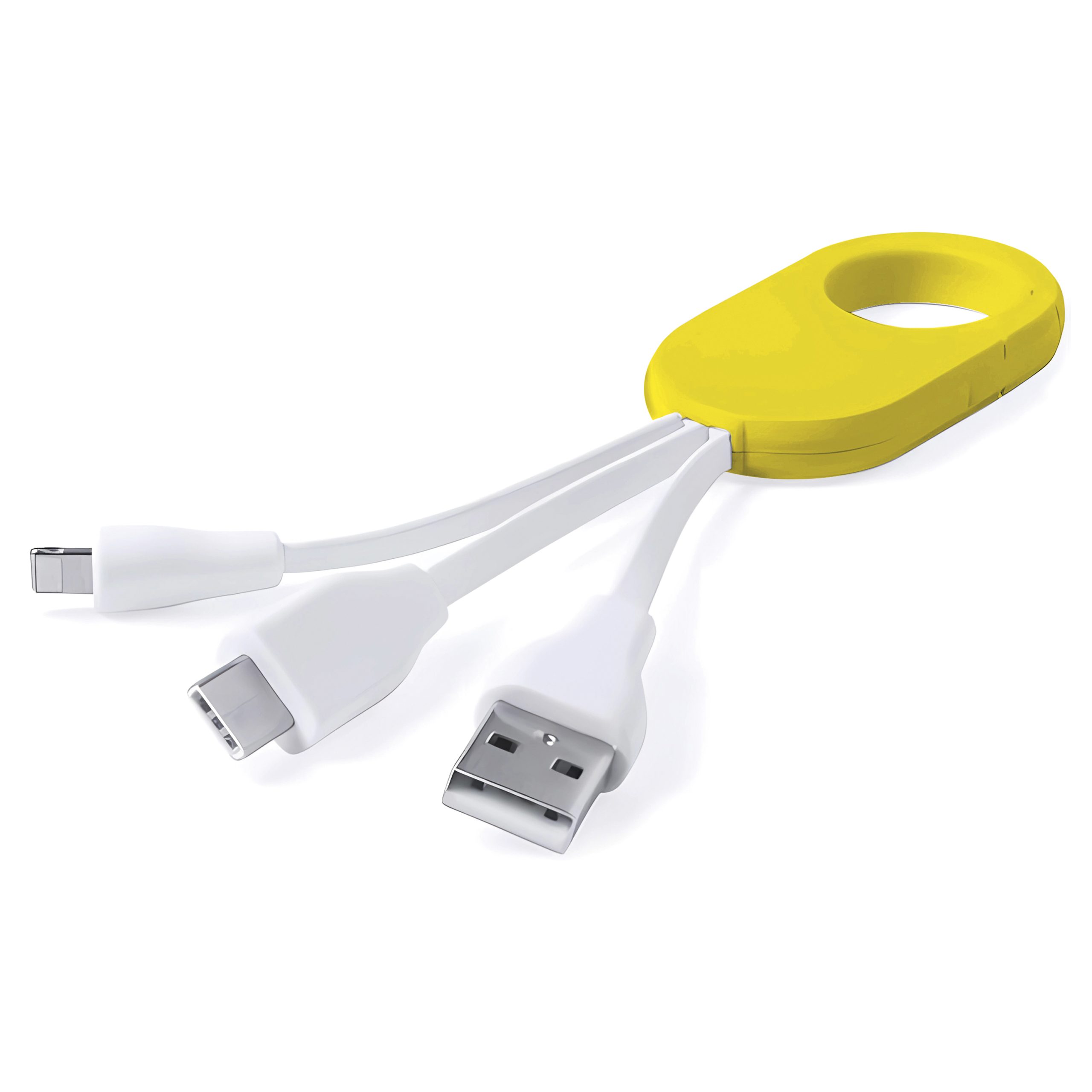 Cable conector multicargador. Entrada USB. Incluye conector Tipo C y Lightning.