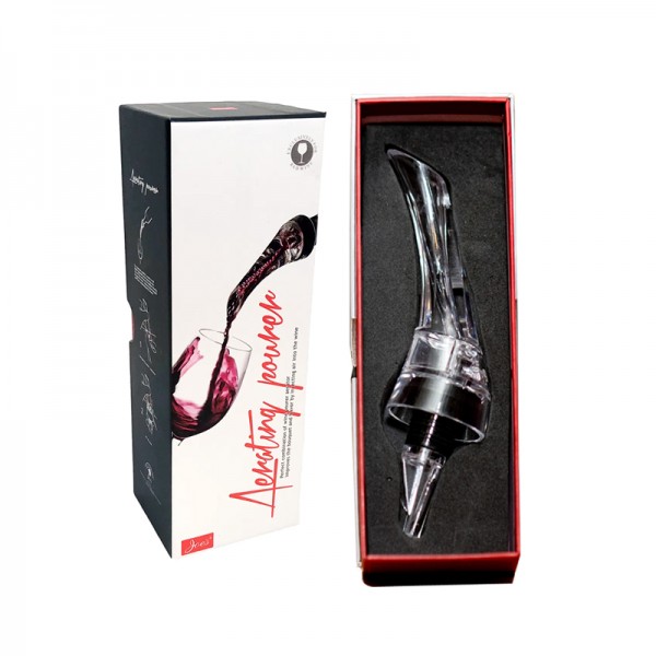 Diseño elegante y fabricado con materiales de calidad. Con una larga cámara y un sistema que prepara el vino con la cantidad óptima de oxigeno.