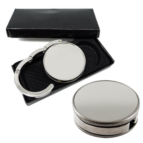 Colgador de cartera espiral metálico plegable perfecto para guardar en cartera o bolso.