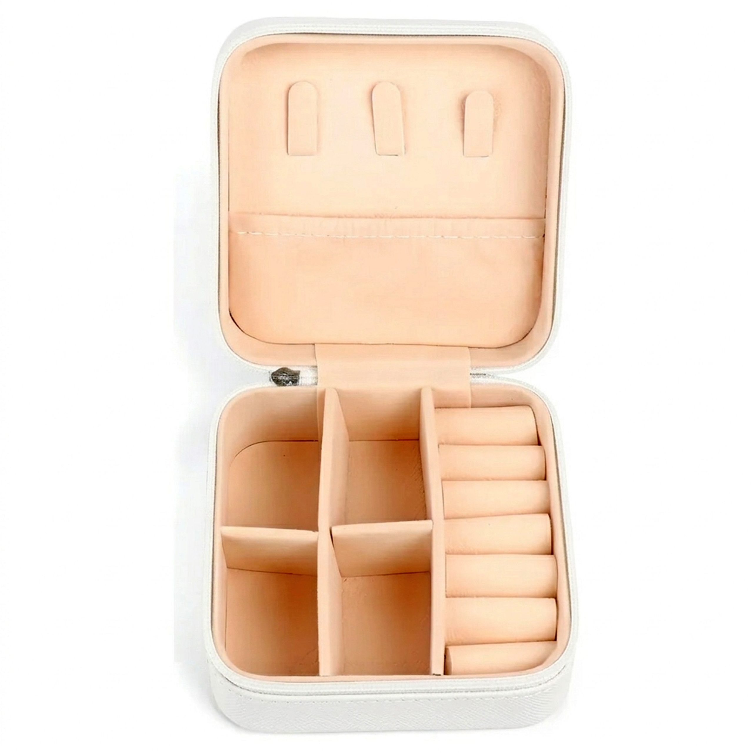 Caja pequeña organizadora blanca de joyas.