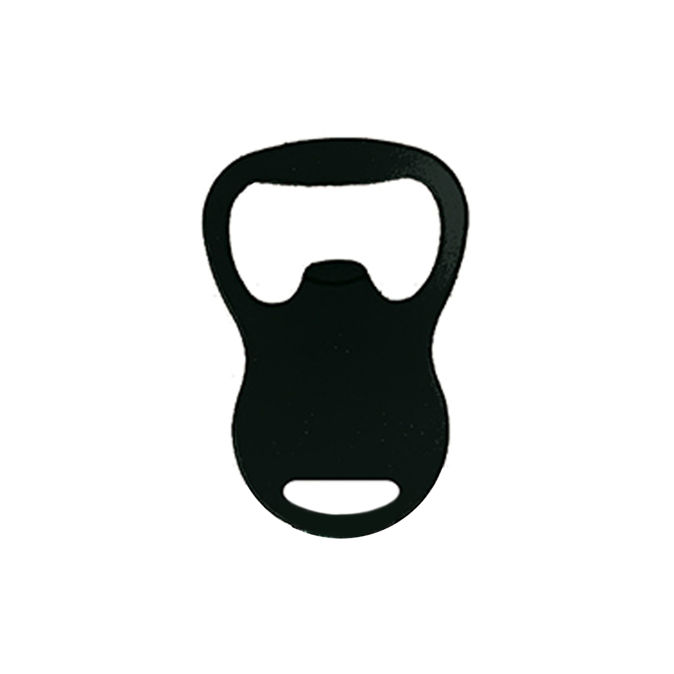 Llavero destapador de aluminio. Presentación en bolsa plástica transparente dentro de Caja Cartón Negra.