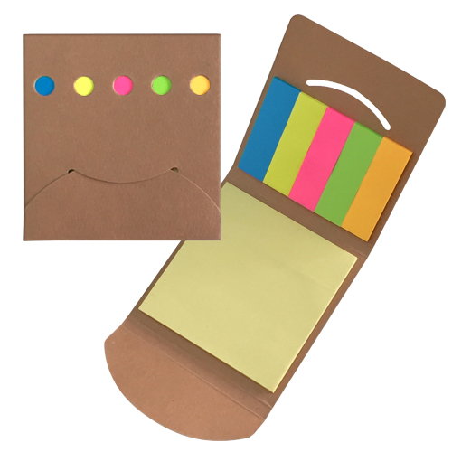 Memo set ecológico de oficina con set de post-it. Tapa con cierre de encaje y orificios.
