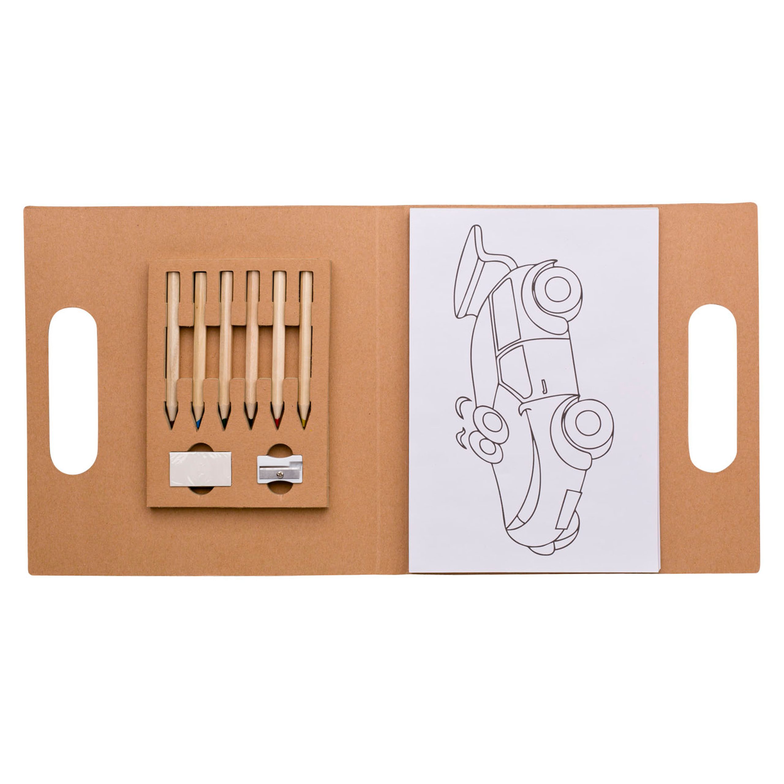 Set de 6 lápices de colores con 30 hojas para colorear.