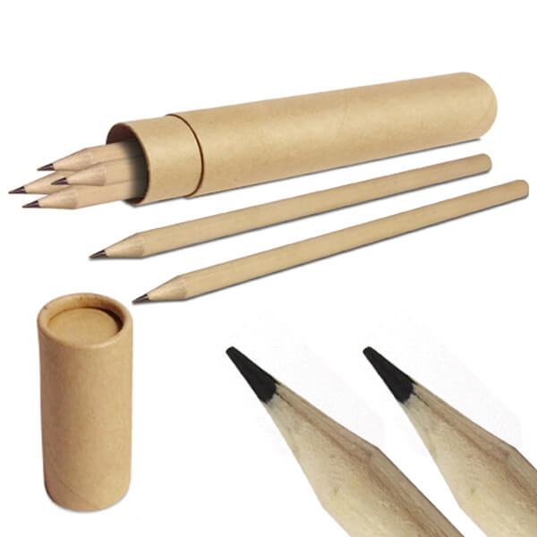 Set de 6 lápices grafito redondos dentro de tubo ecológico cilíndrico.