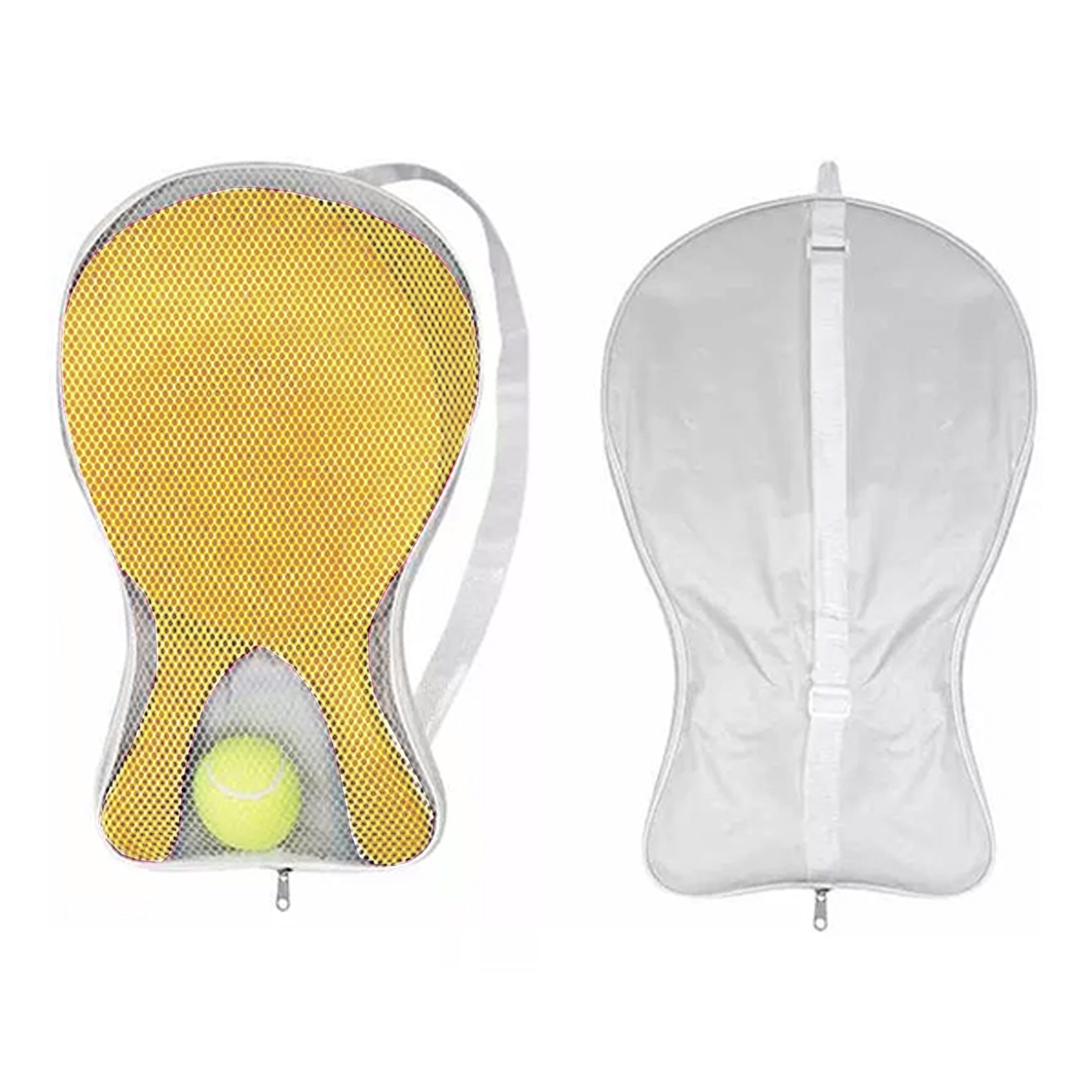 Incluye pelota de tenis y estuche de poliéster blanco para transportar.